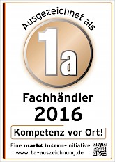 Der Begriff '1a-Fachhändler' wurde im Januar 2007 vom Deutschen Patent- und Markenamt in München als Marke eingetragen. Mit dem im Jahr 2011 erneuerten Qualitätssiegel bekommen inhabergeführte Unternehmen, die sich zu spezifischen Fachhandelskriterien wie einem umfassenden Dienstleistungsspektrum, exklusivem Service, einer gehobenen Außendarstellung sowie qualifizierter Beratung bekennen und über ein aussagefähiges Produktangebot der Markenhersteller verfügen, die 1a-Urkunde und -Aufkleber verliehen und können sich als 1a-Fachhändler ausweisen. Voraussetzung ist das erfolgreiche Bestehen des 5-stufigen Bewerbungsverfahrens.